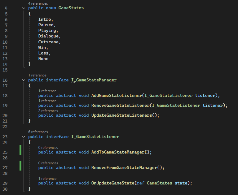 This can also be scaled down to a version that doesn’t require listeners and relies on game events. I use this scaled down version to manage instance states such as enemy behaviours.